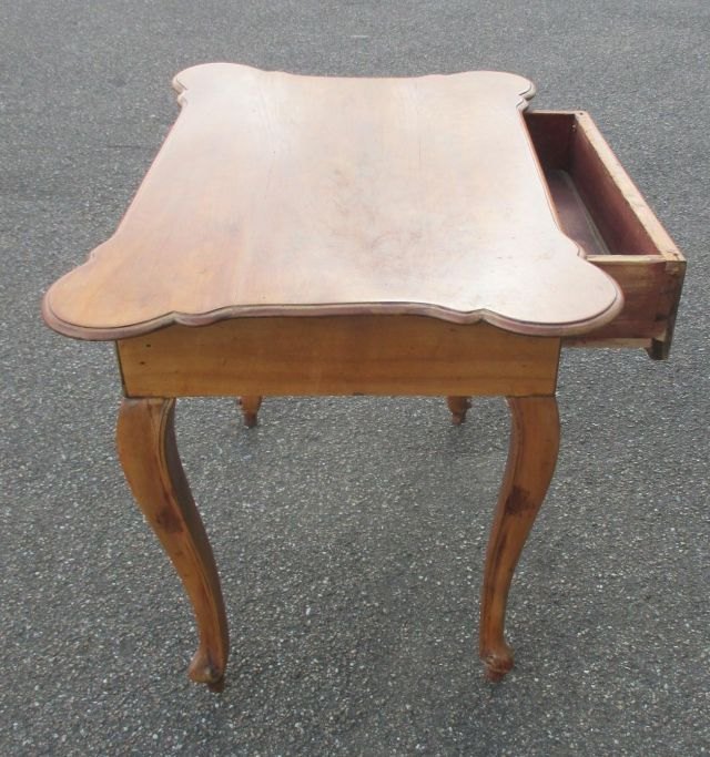 Spillebord, barok ca. 1720 - 1740, Danmark. Poleret valnød. Med skuffe. Capriole ben med udskæring ved fod. H: 67 cm. B.: 85 cm. D.: 59 cm.