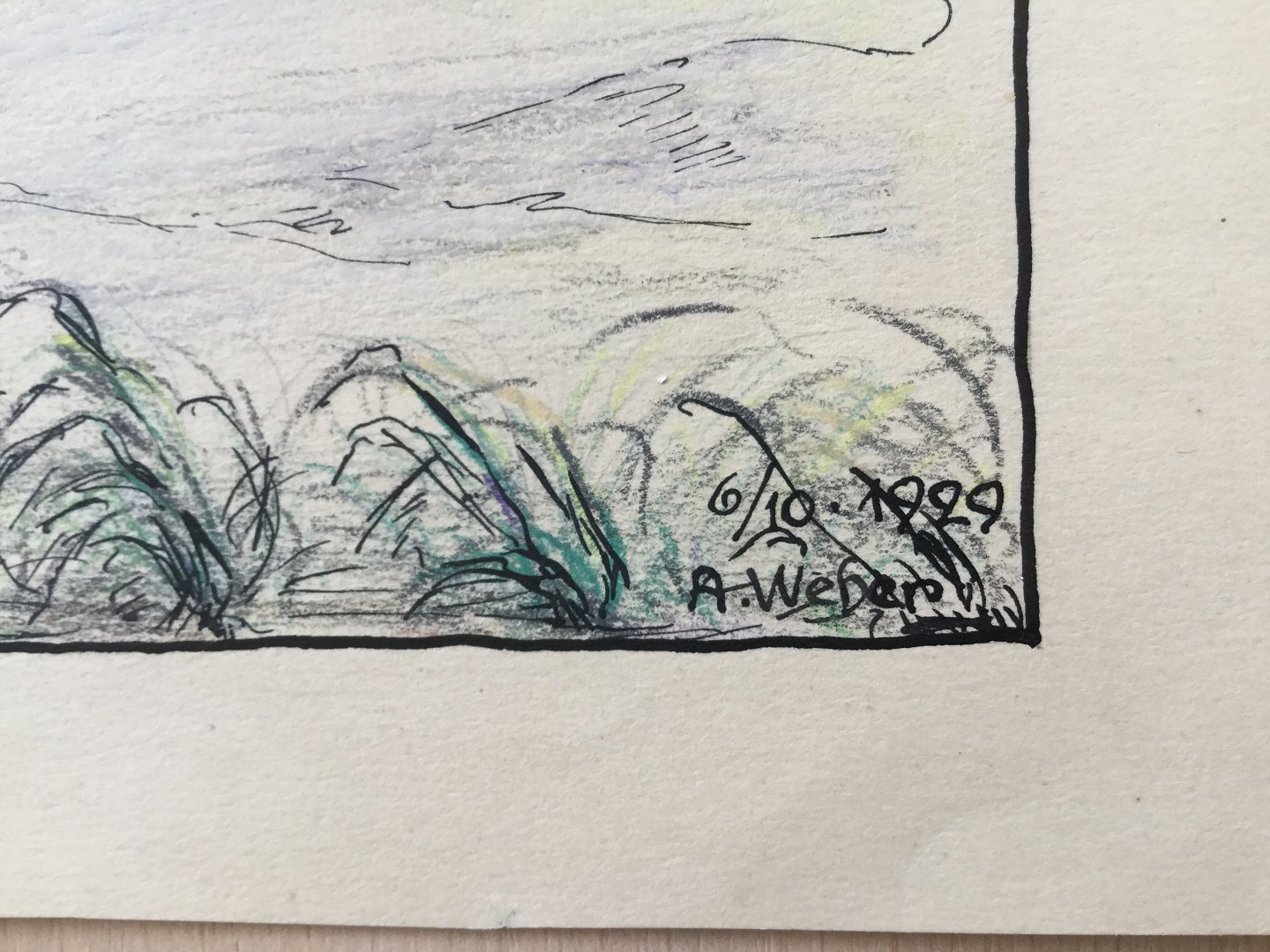 Tegning af A. Weber 1929 - Fiskerhus ved kysten.