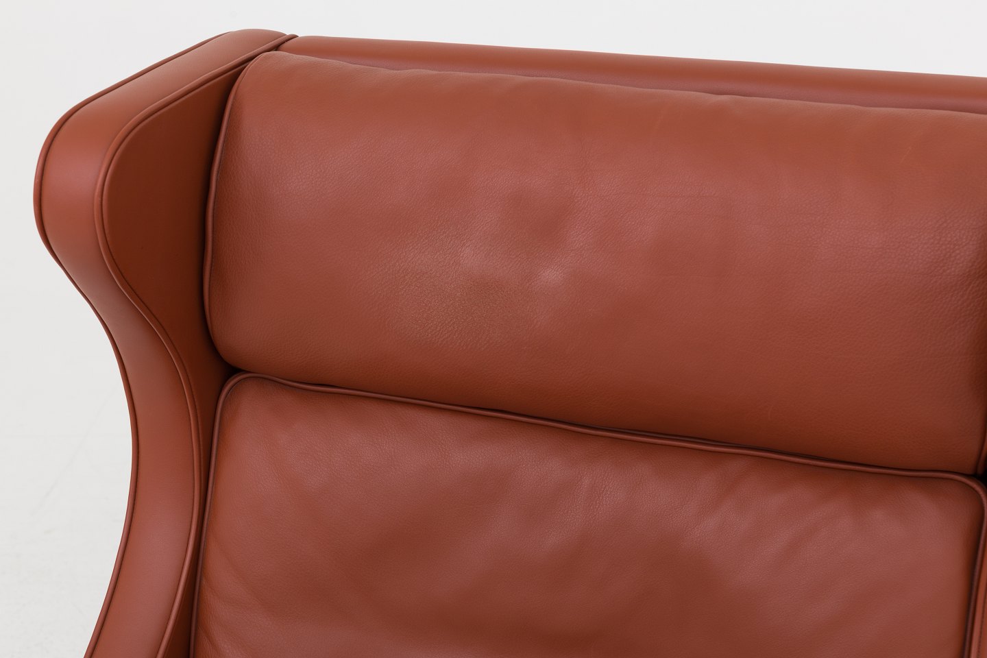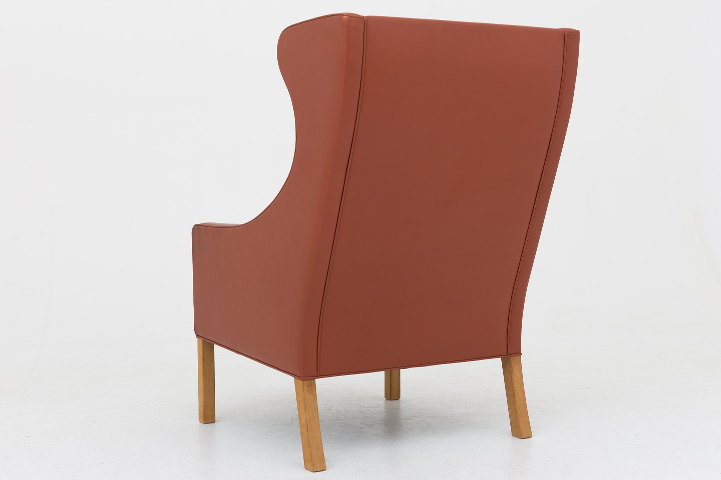 BM 2204 - Øreklapstol i brunt læder og ben i eg. Se skammel med varenummer 1037916