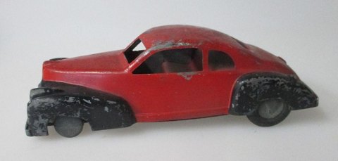 Bemalet legetøjs bil, 20. årh. Danmark. Aluminium og jern. Længde.: 15 cm.