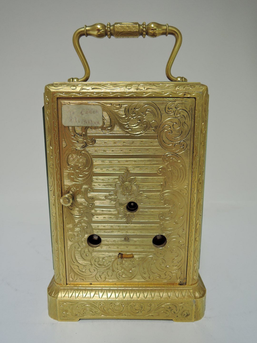 Bolviller a Paris. Rejseur med central sekundviser & ½ time repetion. Højde 14 cm. Urværk er i orden.