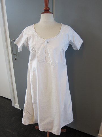 Gammel særk med gamle lærredsknapper, hånd-hæklede kanter, smukt håndbroderede initialer, kile i sidesøm og under armene