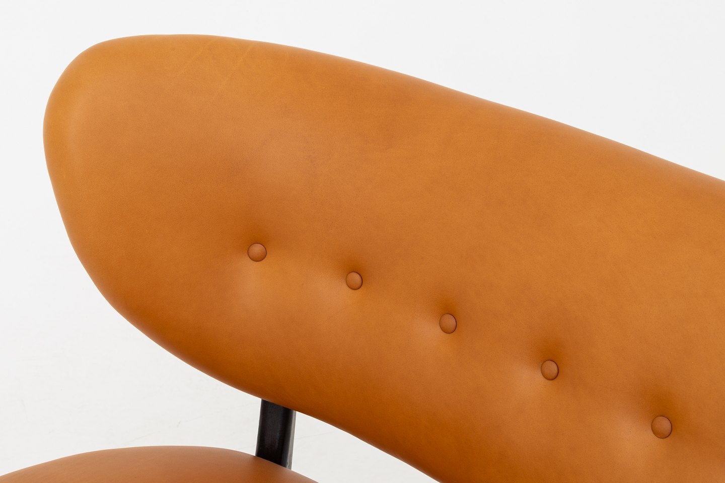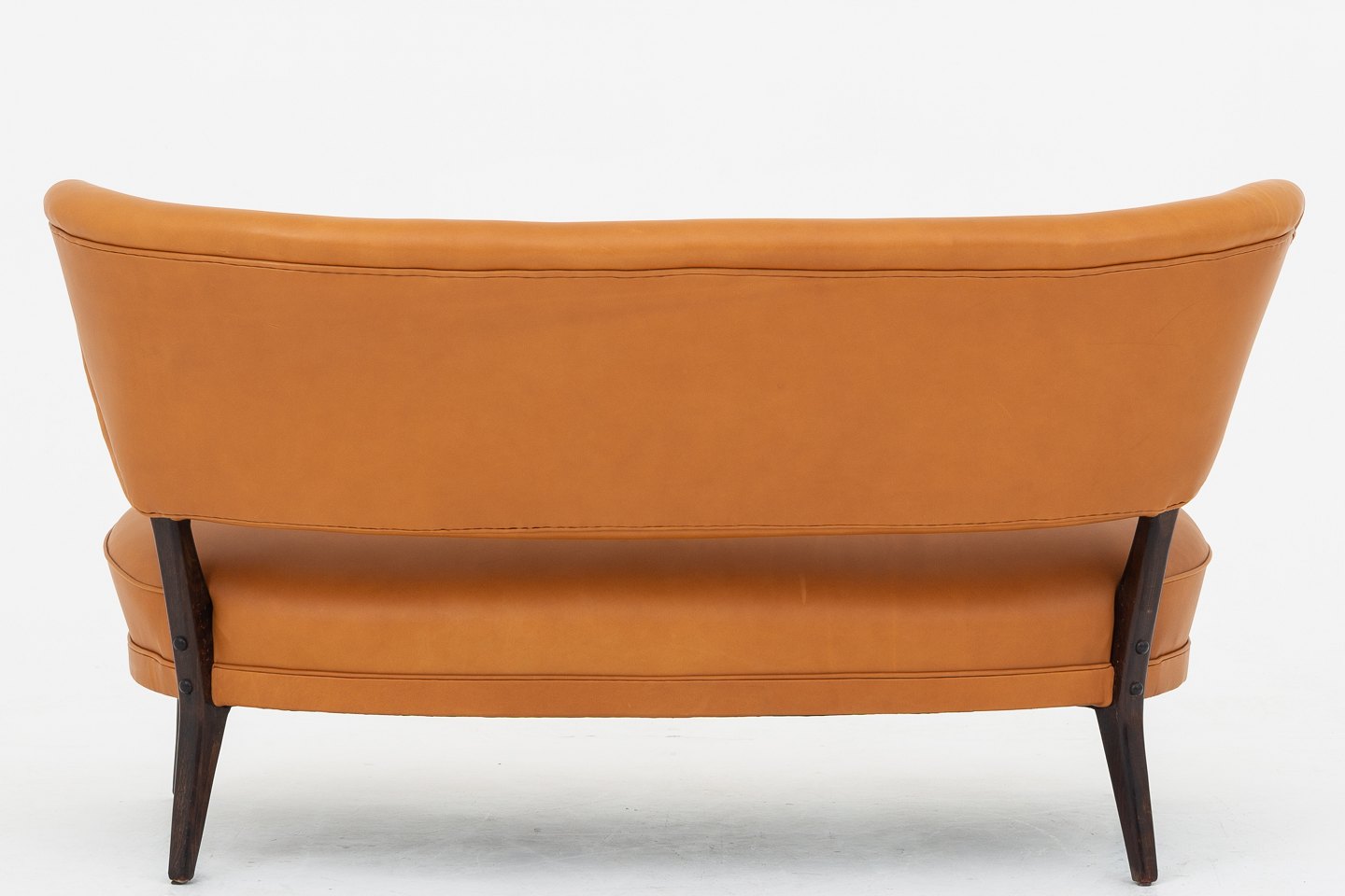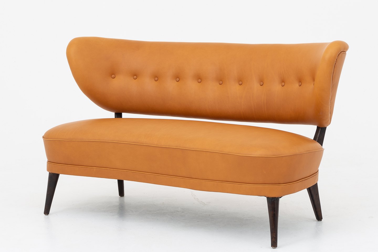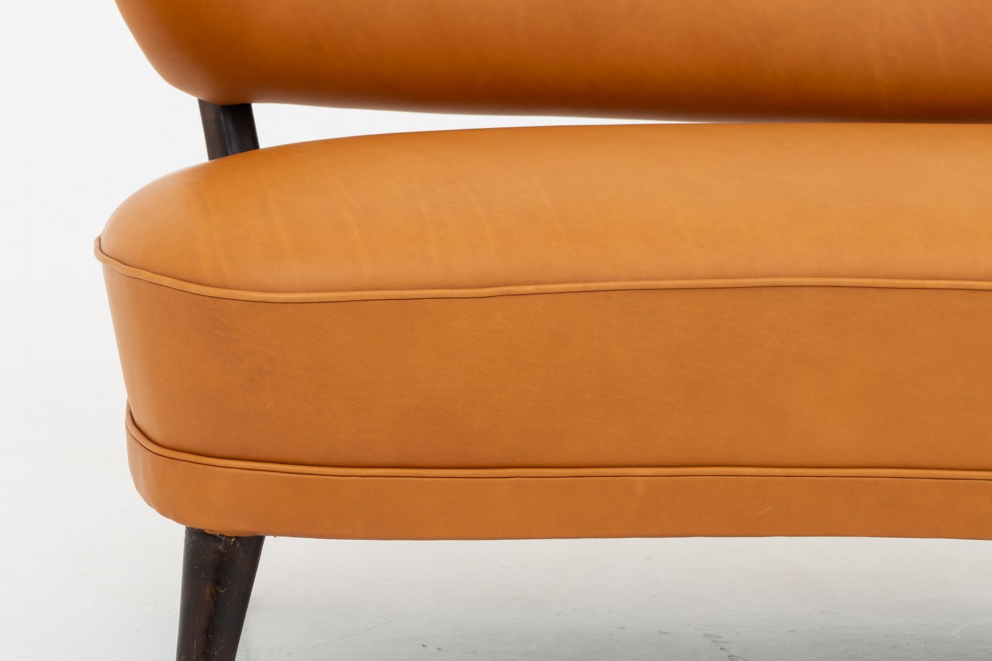 Reupholstered sofa in Shade Coganc leather w. legs in stained beech.