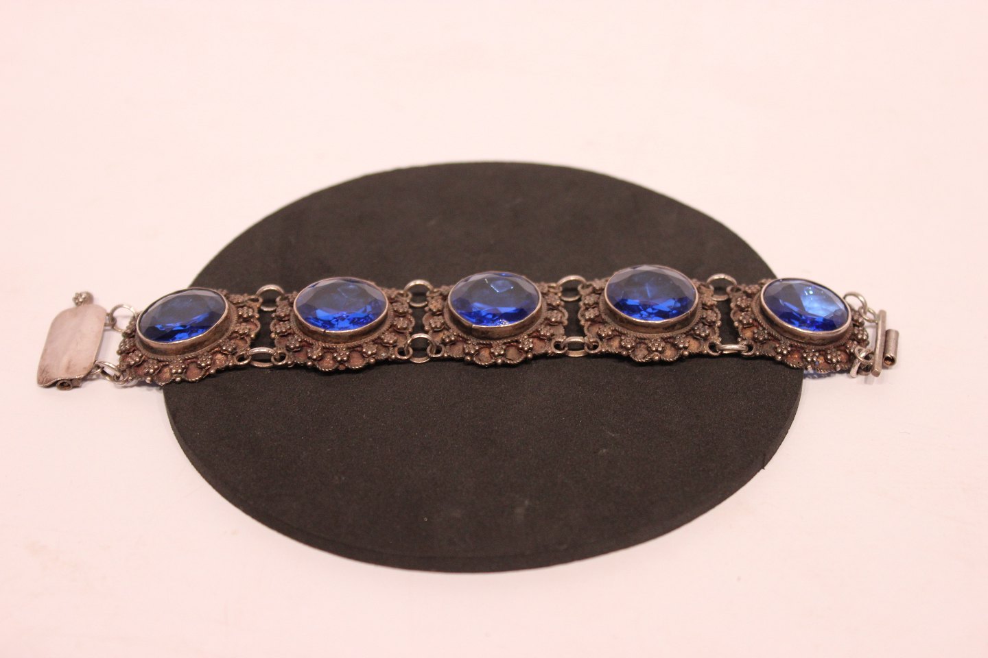 Sterling 900 armbånd med store blå sten fra Jordan, stemplet Jordan ST 900.