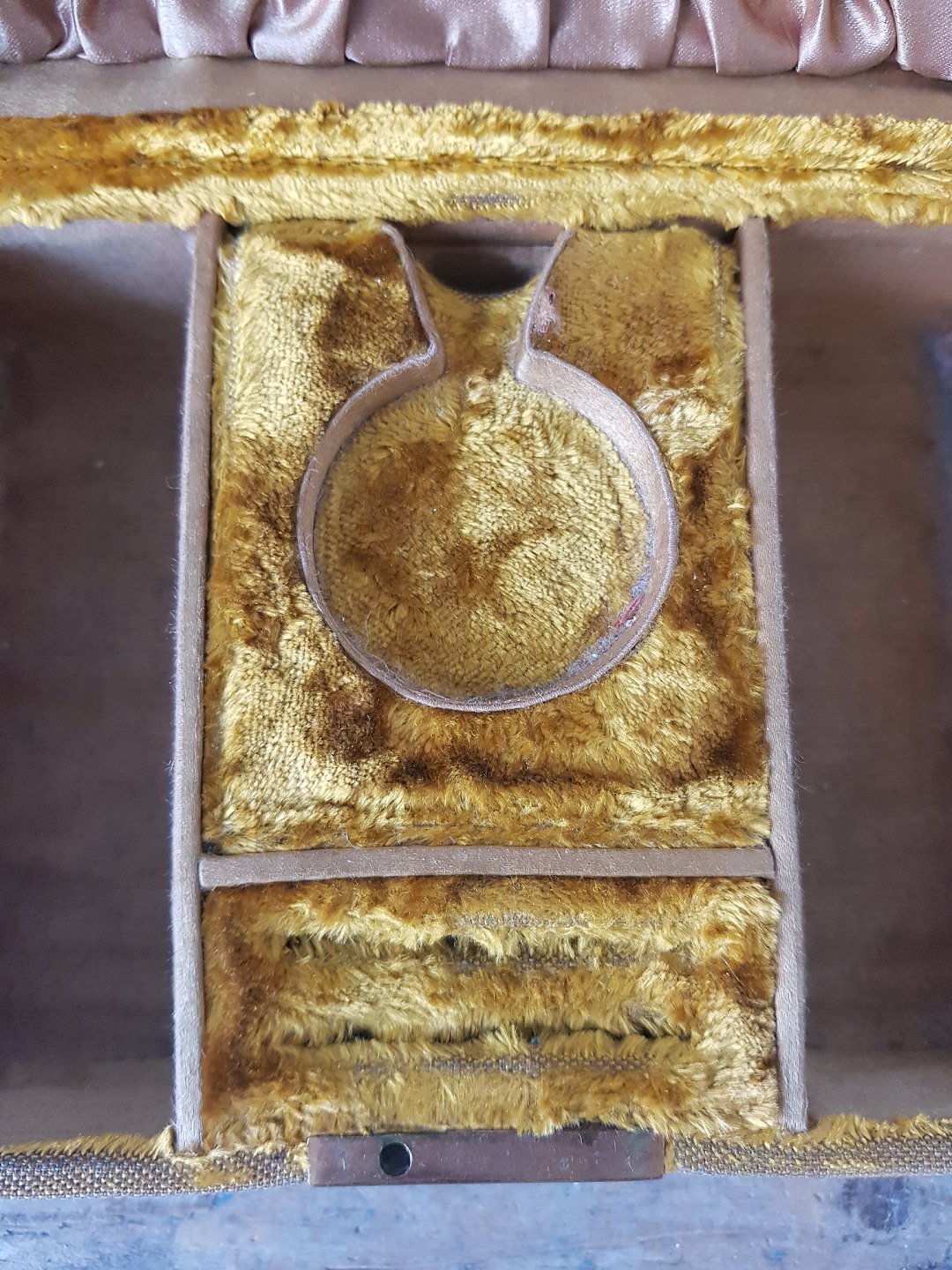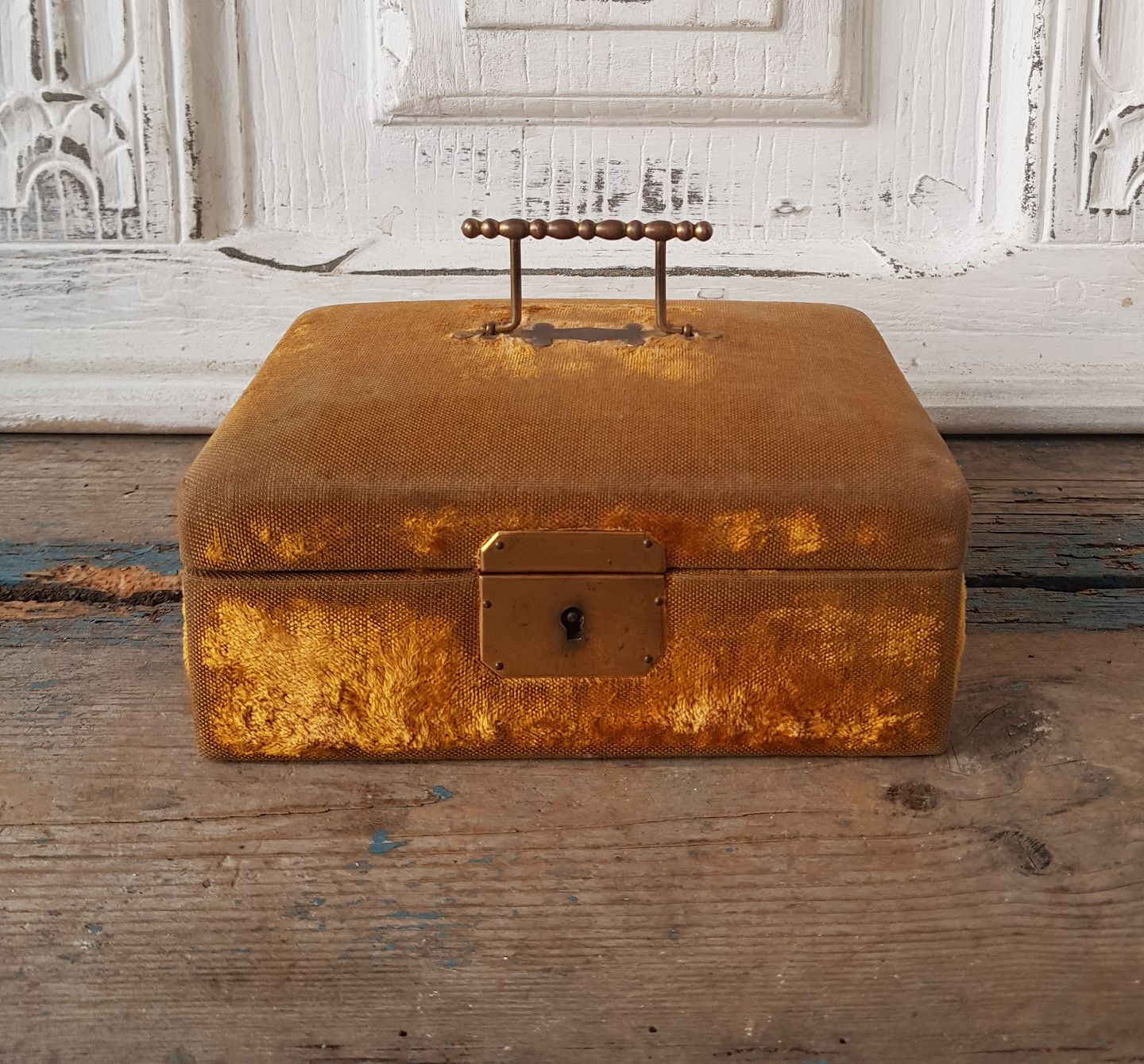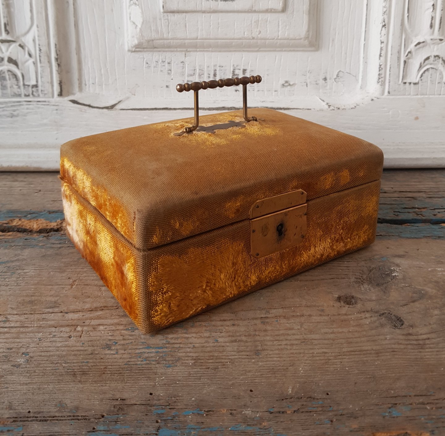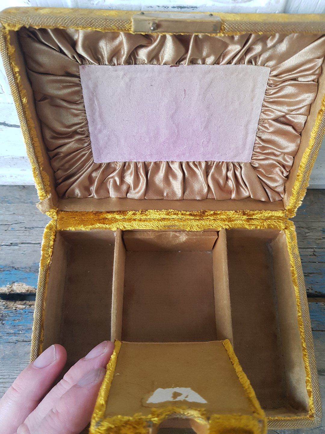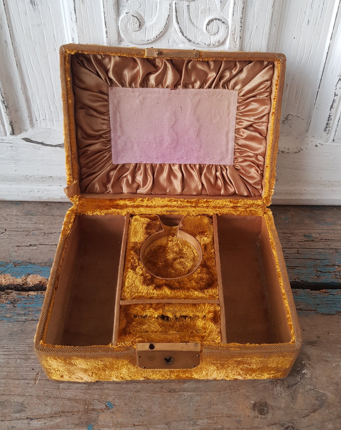 Vintage jewelry box upholstered in golden velor.