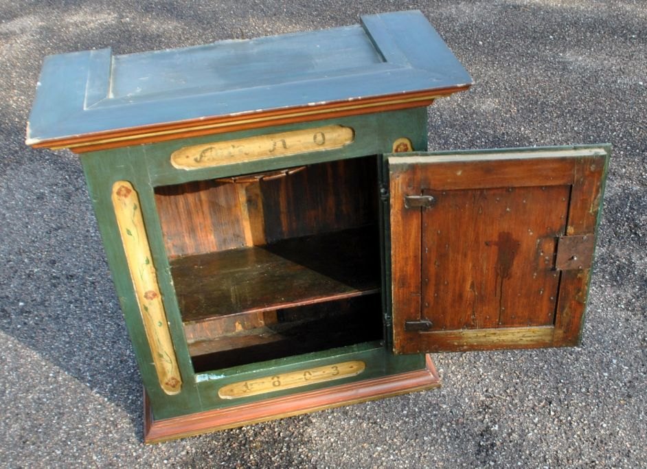 Bemalet hængeskab i fyr, 1803, Danmark.
