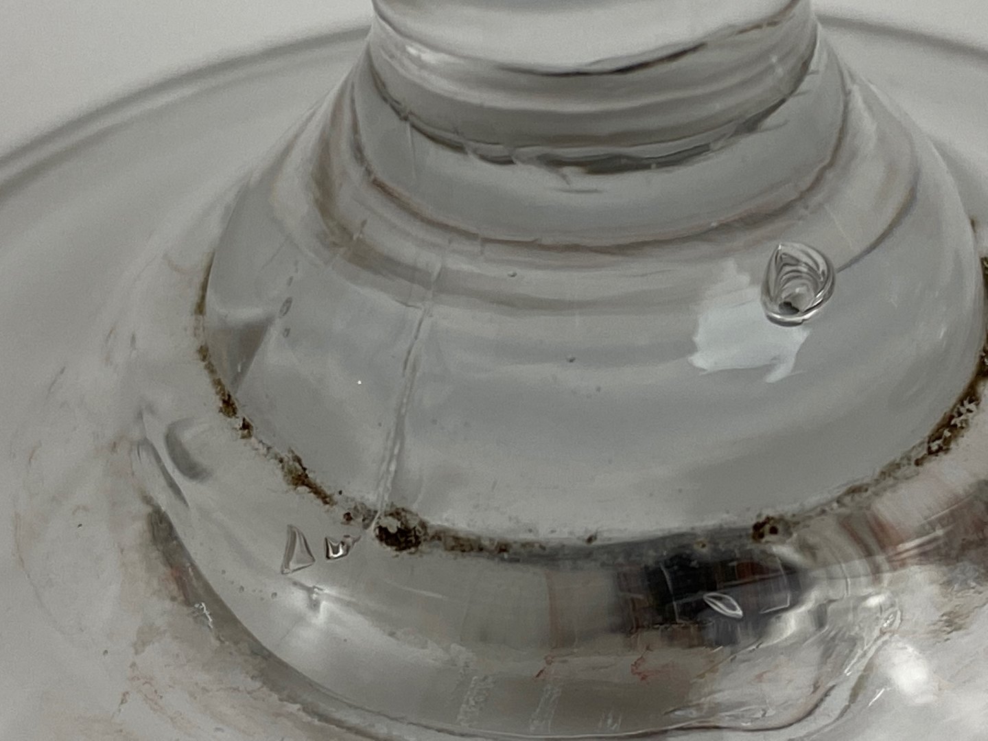 2 gamle Wellington portvinsglas / hedvinsglas. Især glasset til venstre på billedet er med spor fra produktionen - se fotos. Konisk form med halvfacetteret kumme på stilk med knap.