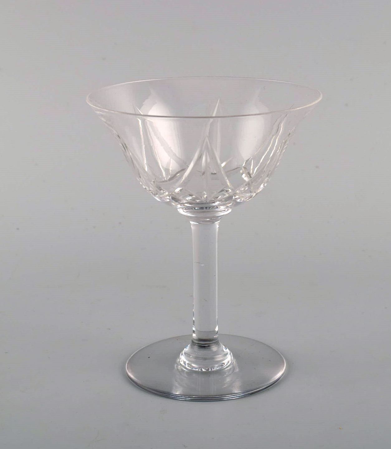 St. Louis, Belgien. Tolv champagneglas i mundblæst krystalglas. 1930/40'erne.