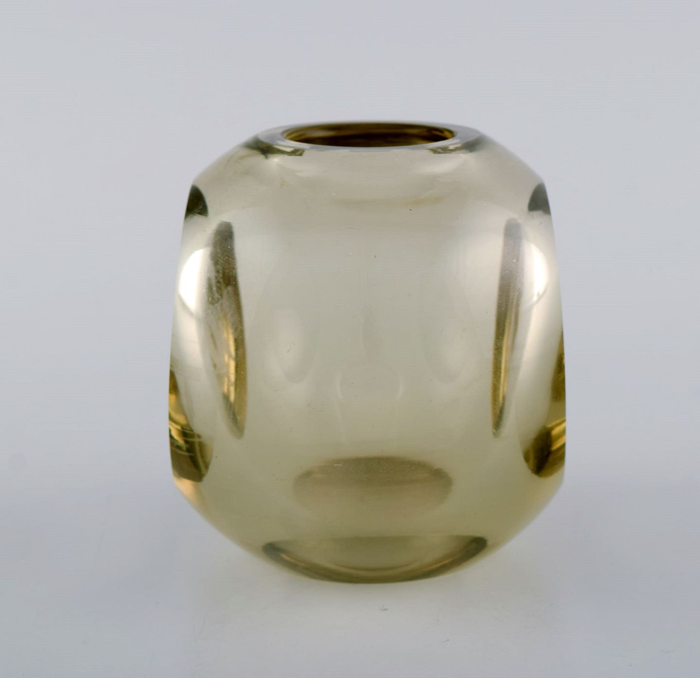 Røgfarvet Iittala vase i mundblæst kunstglas med motiv fra smedje. Smukt finsk design,