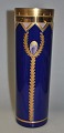 Cylindrisk jugend stil glas vase, 1905 - 1910. Josef Riedel, Polaun. Hvidt opalglas med blå overfang. Med håndbemalede florale emaljedekorationer og forgyldninger. Stemplet under bunden: 273/11.. .
