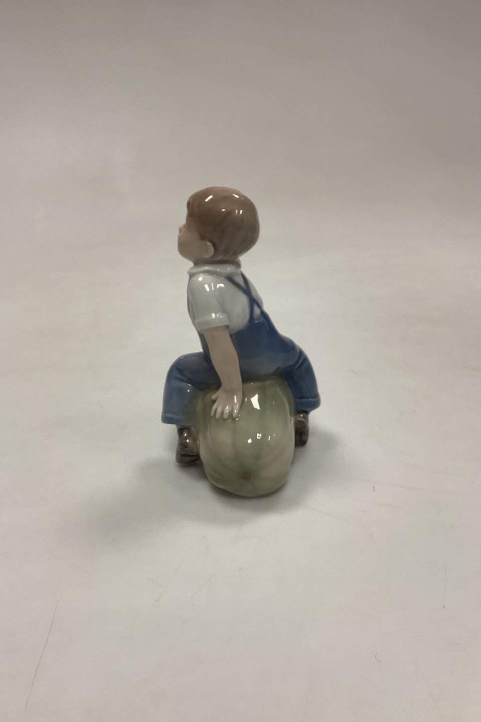Royal Copenhagen Figur Dreng på græskar No. 4539 eller 153. Designet af J.M. Nissen. Måler 12 cm / 4,72 in.
