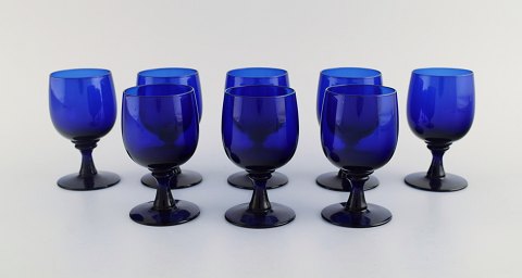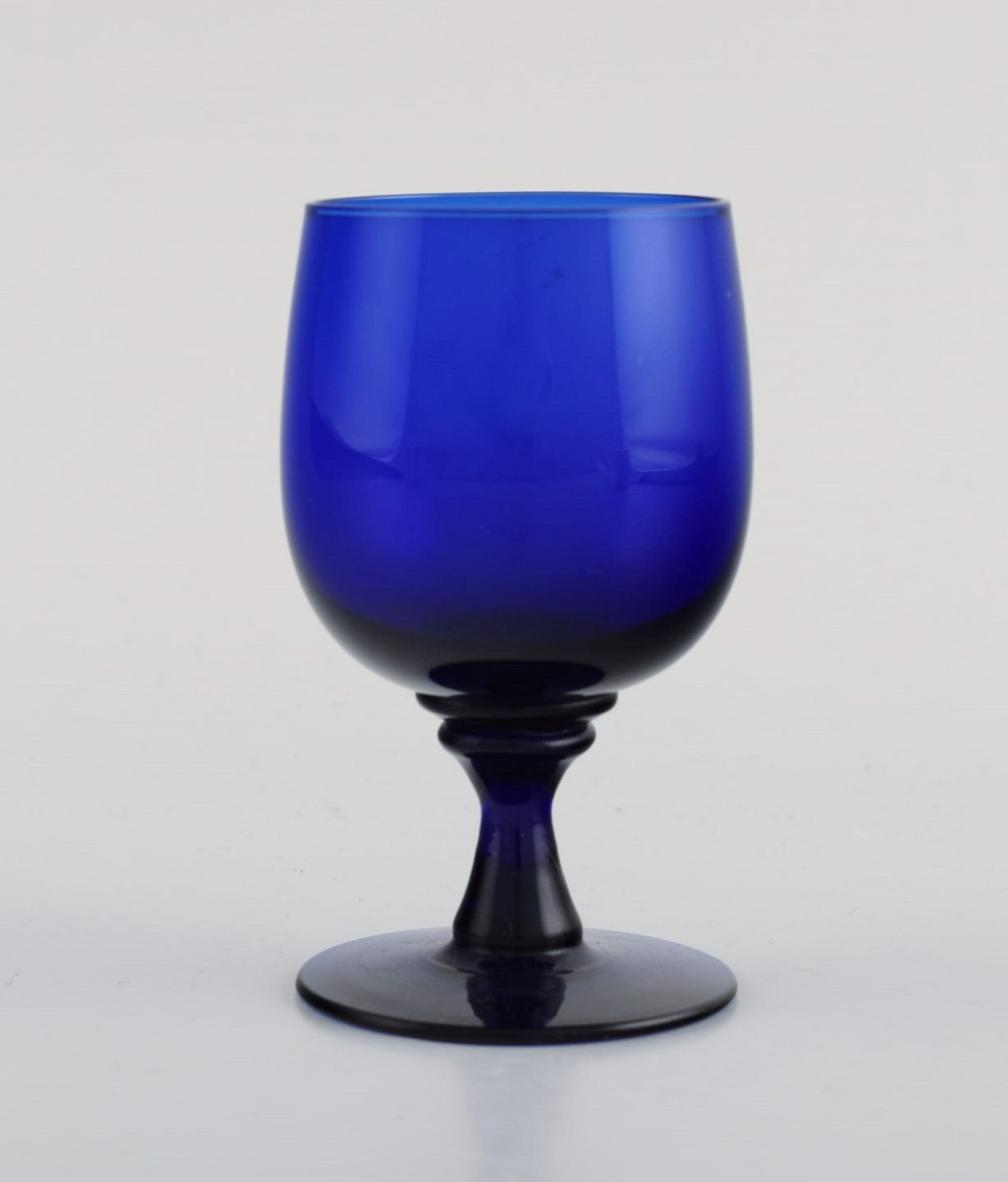Monica Bratt for Reijmyre. Otte sherry glas i blåt mundblæst kunstglas. 1950'erne.