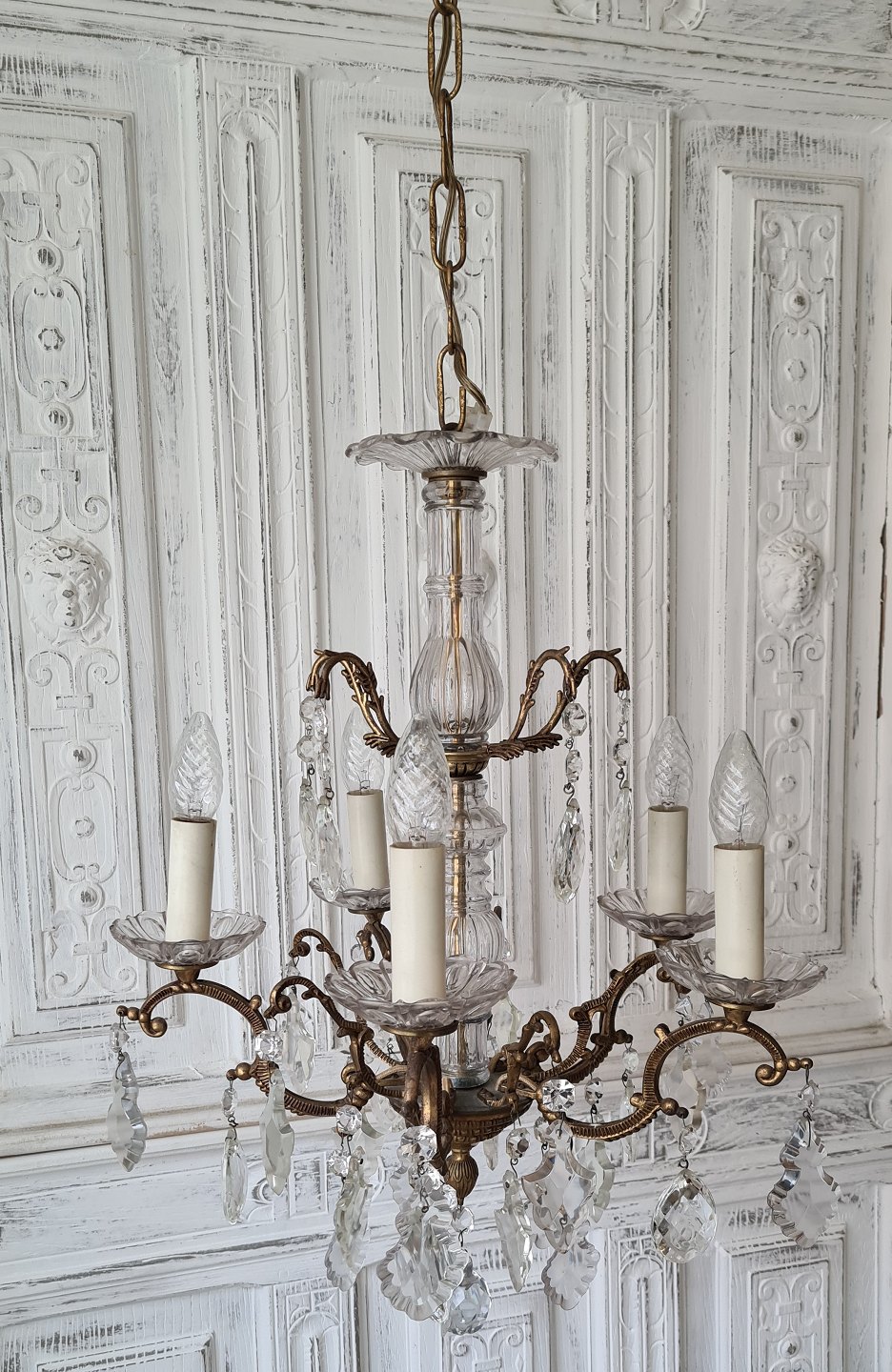 Meget smuk 5-armet lysekrone behængt med talrige store prismer