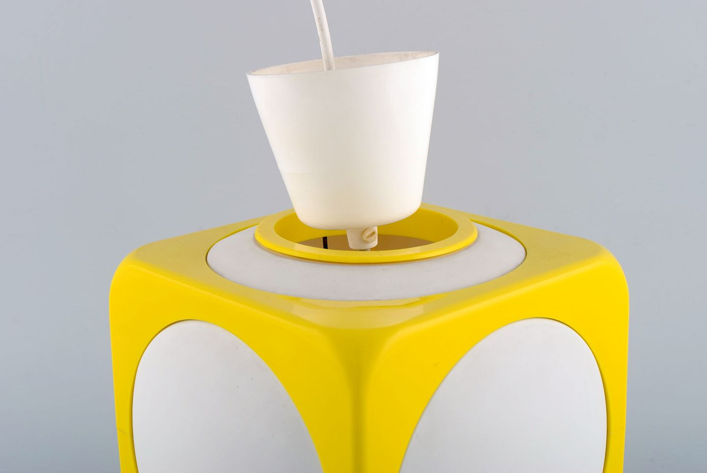 Skandinavisk designer. Retro loftpendel i hvid og gul plast. 1970'erne.