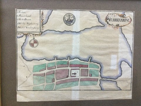 Gammelt koloreret kobberstik af Erik Pontoppidan - Kort over Stubbekøbing - fra Danske Atlas 1767.