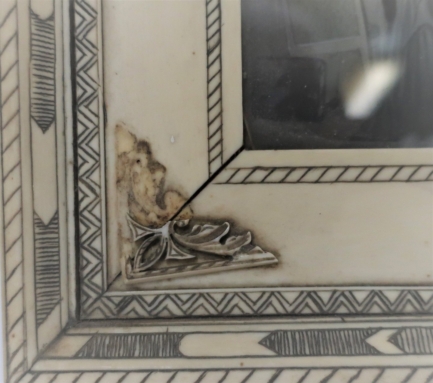 Fredsaftale efter slaget ved Waterloo underskrives. Ramme af elfenben. Der er indholdsfortegnelse af de afbillede personer fra underskrivelsen. Der er et par små defekter på pynten på rammen. Mål 24*38 cm