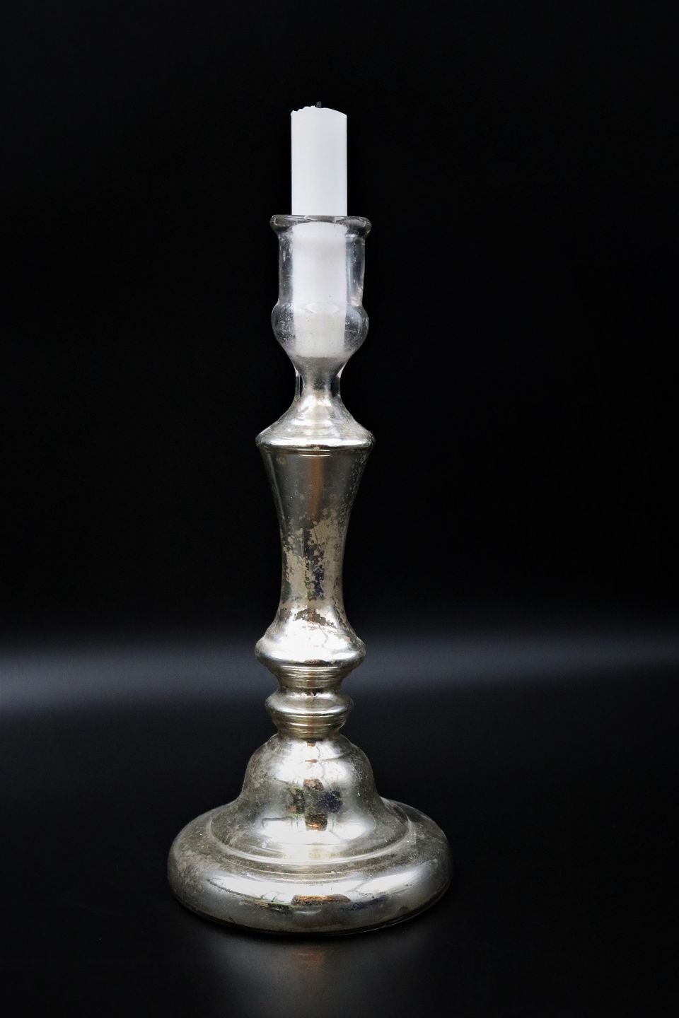 1800 tals lysestage i fattigmandssølv (Mercury silver glass)