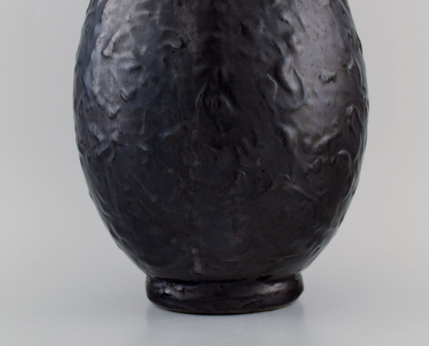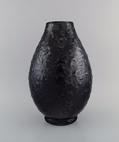 Jerome Massier (1850-1916) for Vallauris. Stor antik vase i glaseret stentøj. Smuk metallisk glasur i sorte nuancer. Tidligt 1900-tallet.