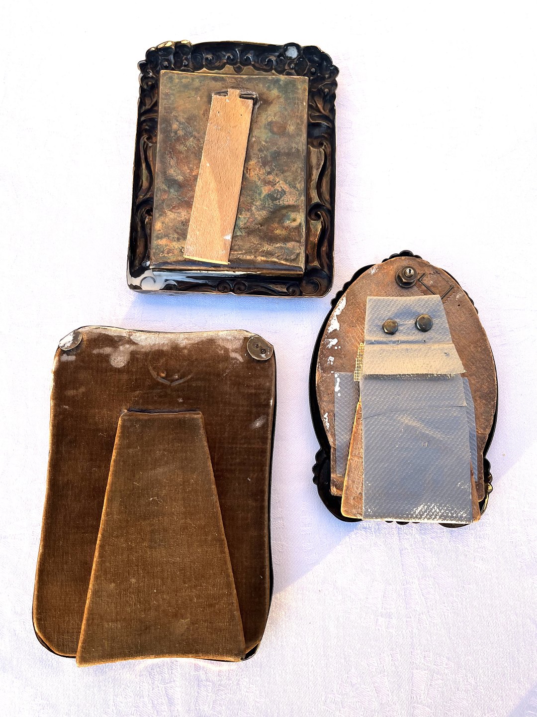 3 pletsølv rammer, Art Nouveau, ca. 13cm / 10cm * I charmerende patineret stand og repationer på bagsiden*