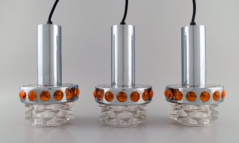 Raak, Holland. Tre loftspendler i forkromet metal og kunstglas. 1970'erne.