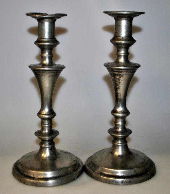 Par tin stager, 19. årh. Rund fod og profileret stamme. Højde.: 26 cm.