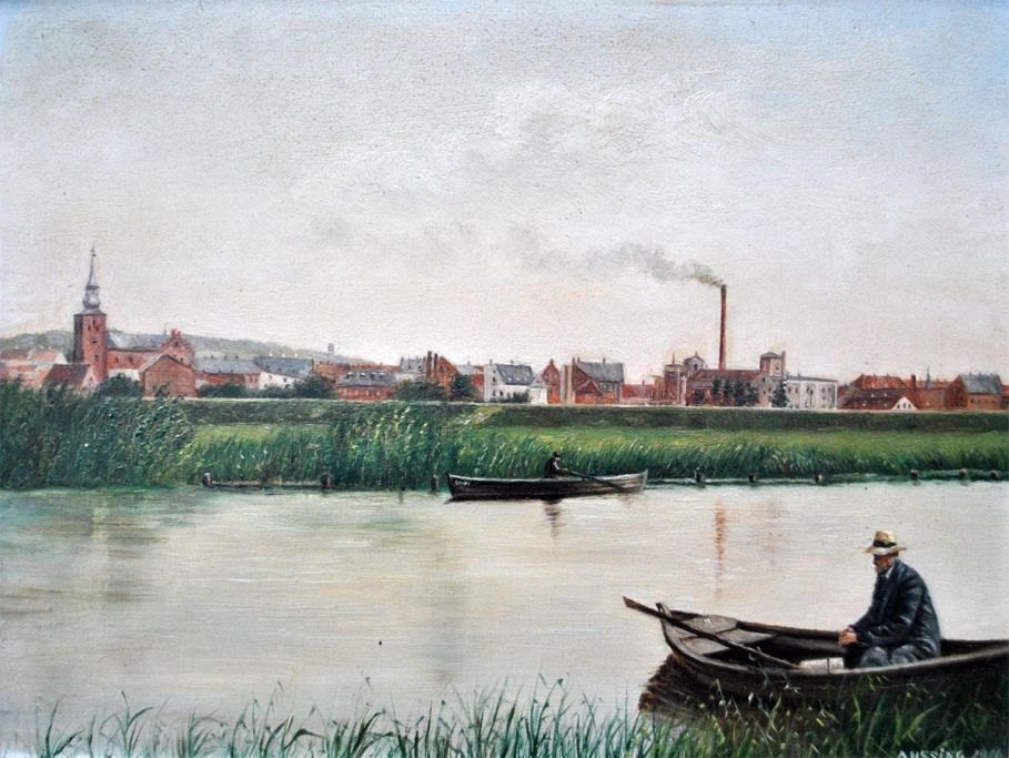 Dansk kunstner (20. årh.) En fiskende mand ved Horsens.