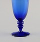 Monica Bratt for Reijmyre. Fire shotglas i blåt mundblæst kunstglas. Svensk design, midt 1900-tallet.
