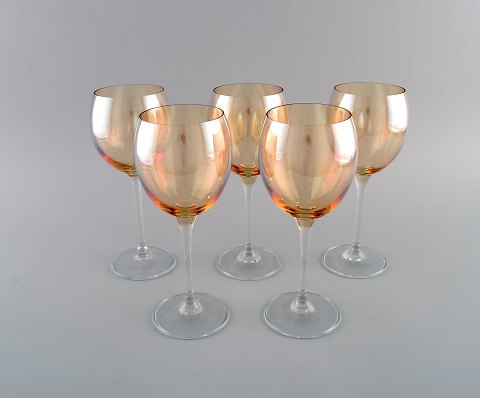 Skandinavisk glaskunstner. Fem store rødvinsglas i kunstglas. 1980'erne.