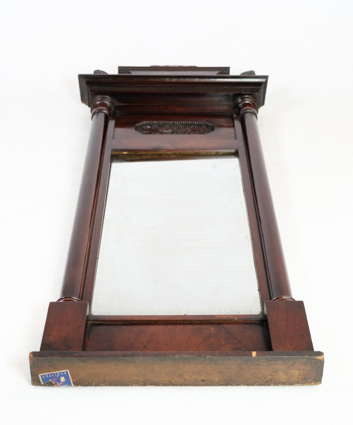 Antik spejl i træsorten mahogni fra perioden sen empire fra omkring år 1840'erne.