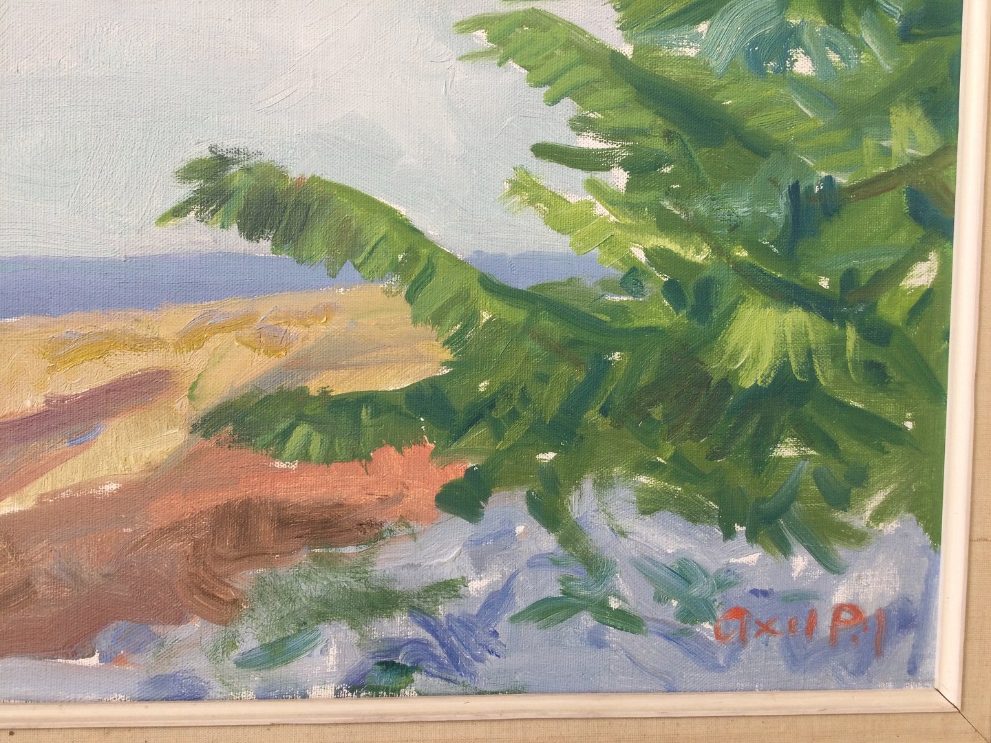 Axel P. Jensen var uddannet fra Teknisk Skole i Aalborg 1903-07 - derefter på Kunstnernes Studieskole 1907-08 ved Kristian Zahrtmann og samme sted 1908-10 ved Johan Rohde.