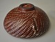 Scheel, Sara (21. årh.): Skål. Brun glaseret lertøj. Riflet kan på fod. Signeret. H.: 5,7 cm. Dia.: 13,3 cm.