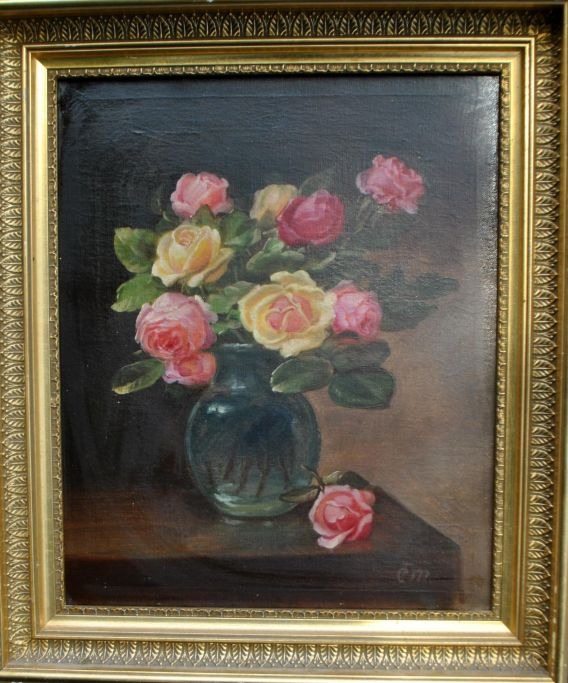 Madsen, CF (19th/20th century) Denmark: Roses in a vase. Oil on canvas. Signed. 45 x 37 cm. Framed: 56 x 45 cm.