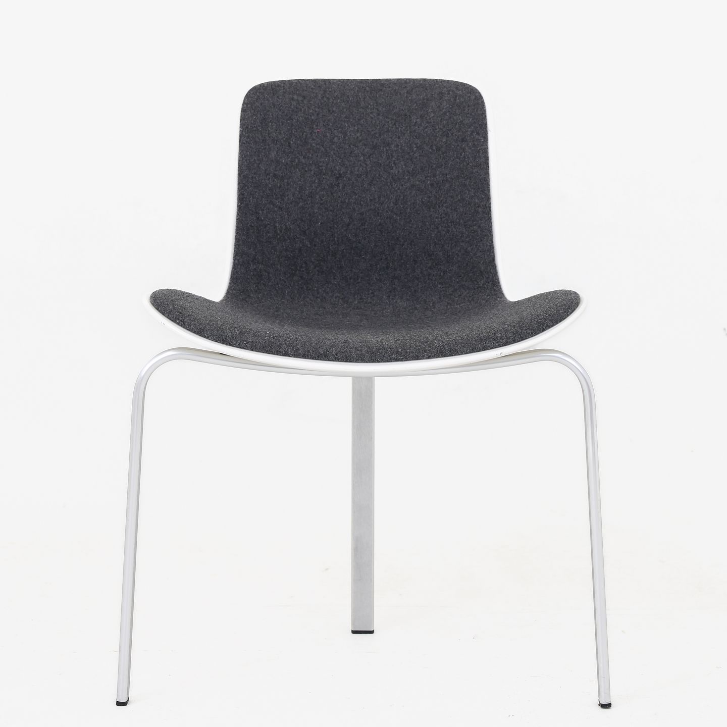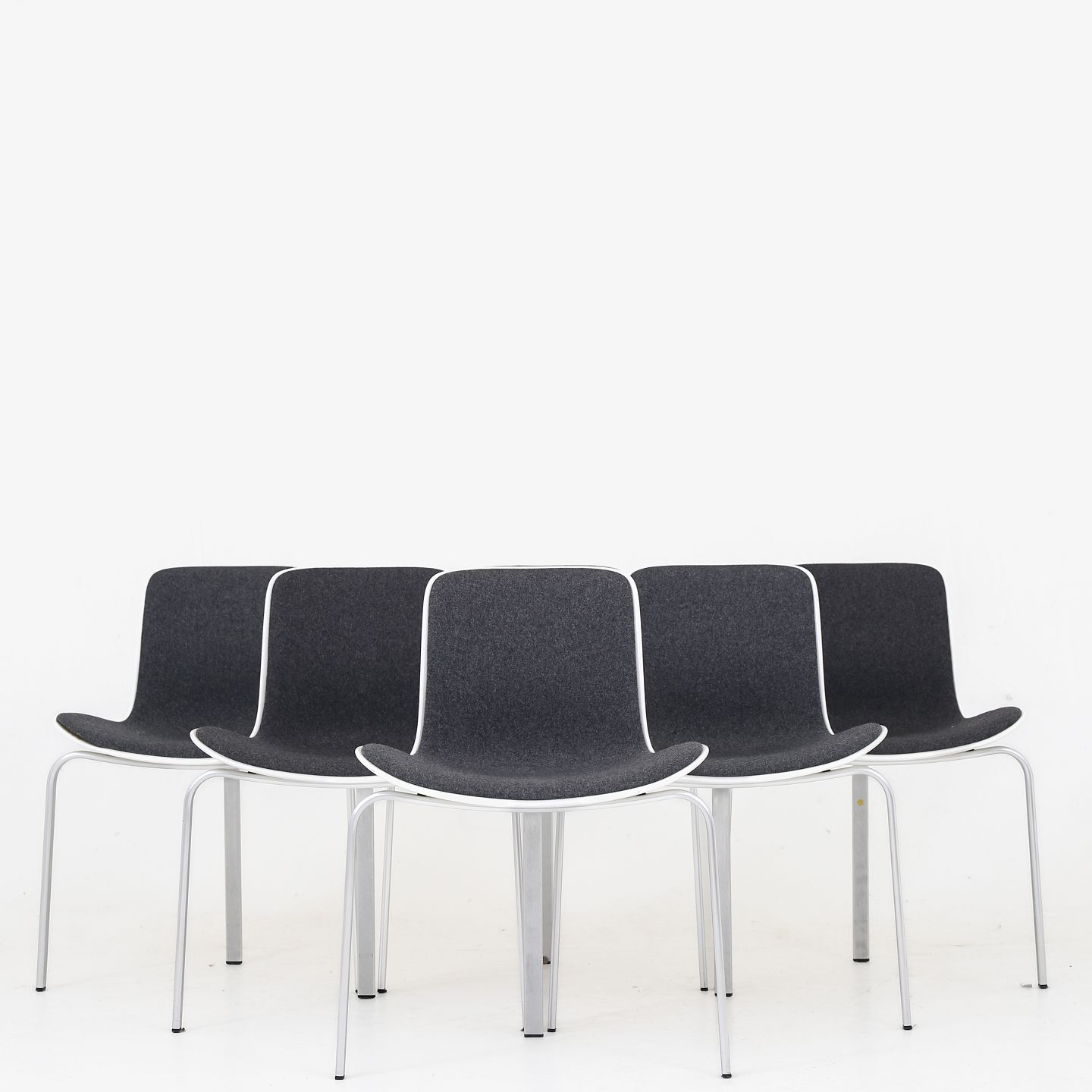 PK 8 - Sæt á 6 spisestole forside betrukket med grå uld.