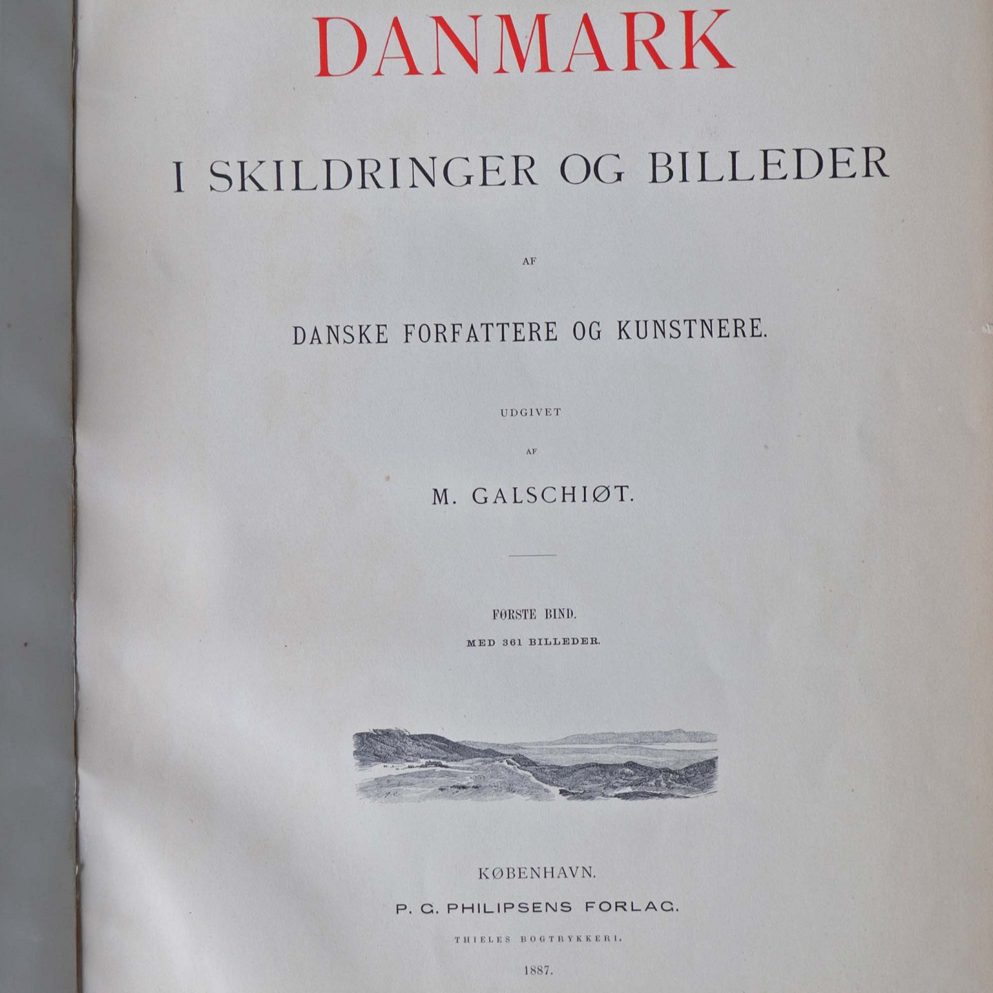 Et sæt bøger med titlen Danmark i skildringer og billeder af danske forfattere og kunstnere