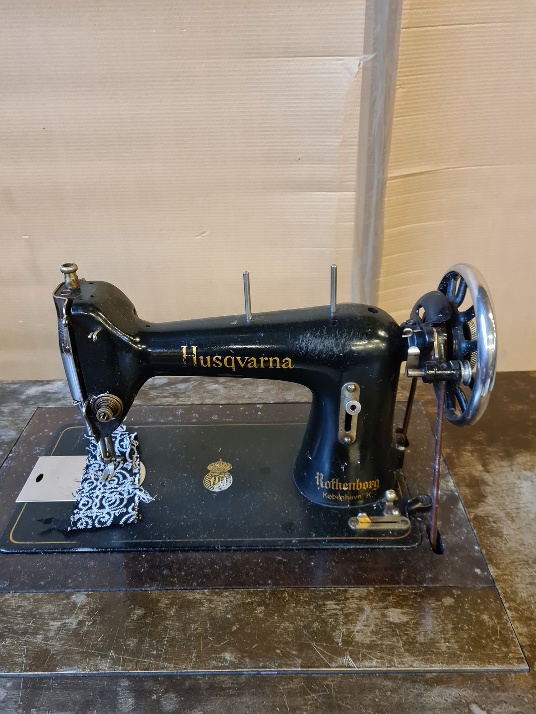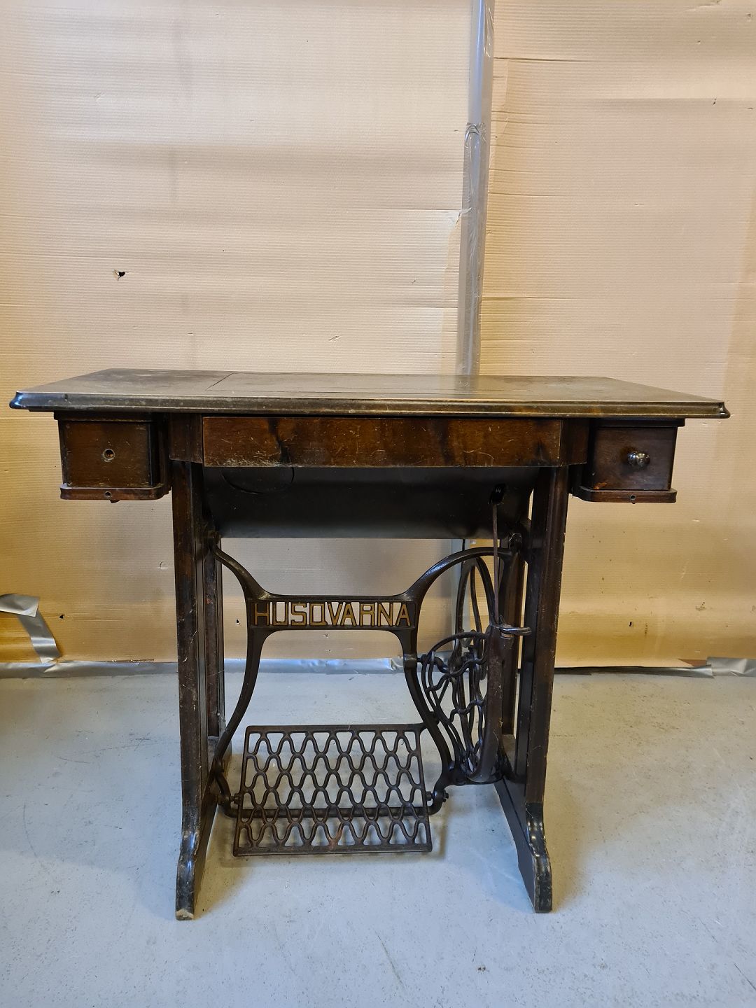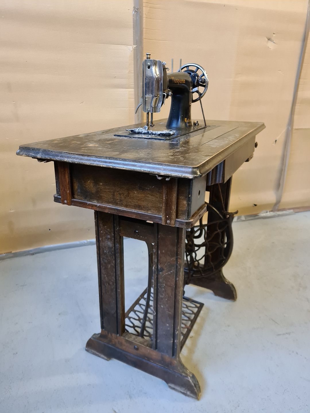 Husqvarna symaskine i ege og birketræ, fra 1910erne.