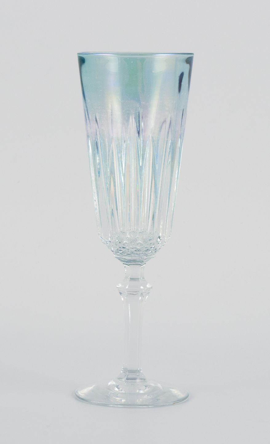 Seks franske champagnefløjter i krystalglas.