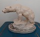 Bemalet figur i keramik af isbjørn. Formgivet af Lauritz Jensen i 1904. Har to små skår på undersiden af soklen (se fotos). Fabriksmærket på bunden. Modelnummer 787. Mål: H. 17½ cm L. 23 cm