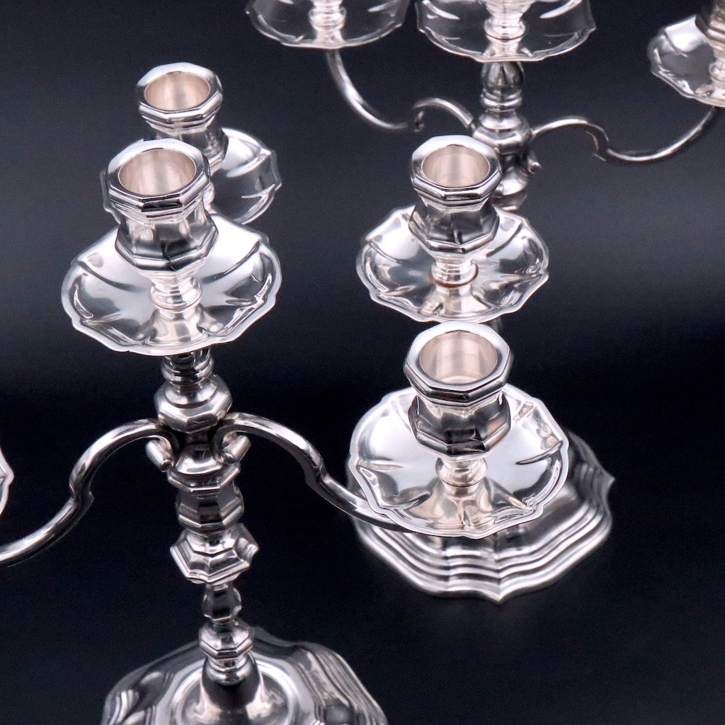 A. Dragsted. Et par fire-armet kandelabra i sølv.