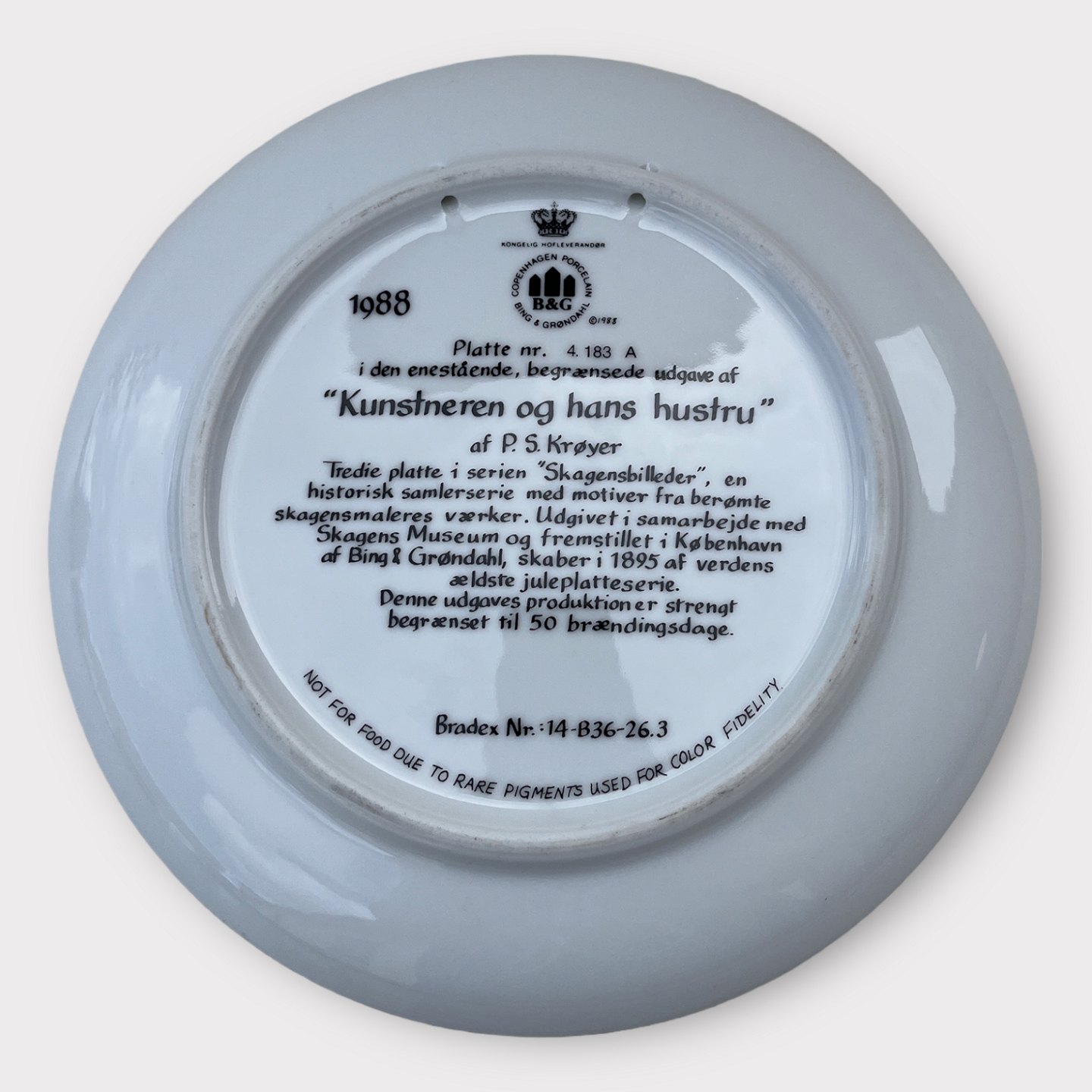 | Bing & Grøndahl, Skagensmalerne, 1988, Plattennr. 4, „Der Künstler und seine Frau“, P.S. Krøyer *Perfekter Zustand*