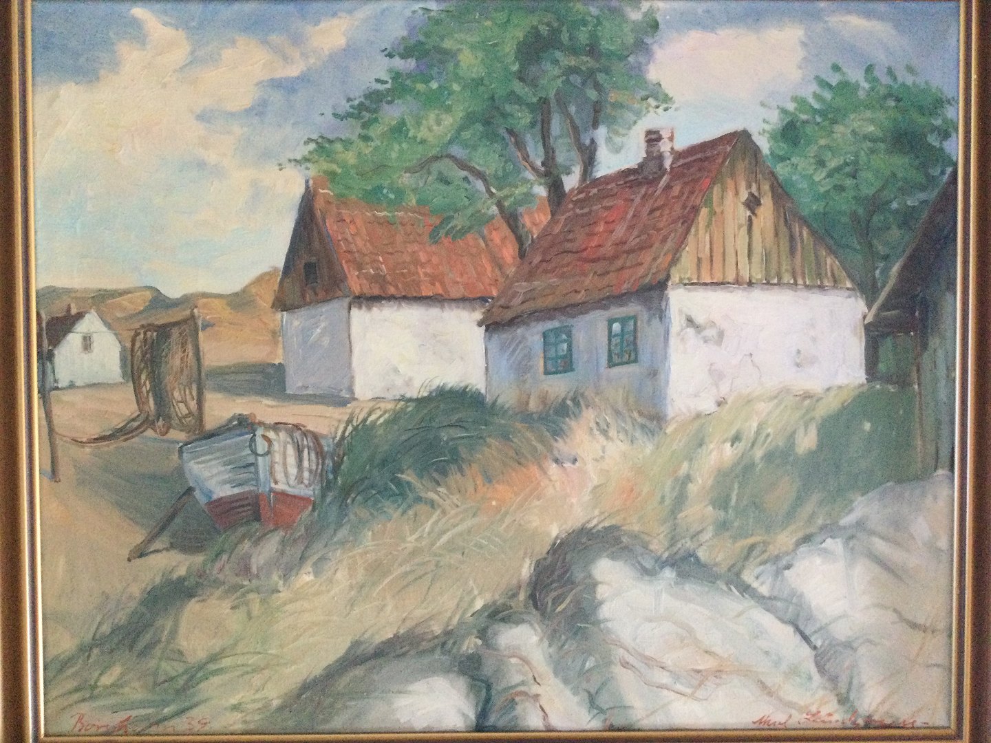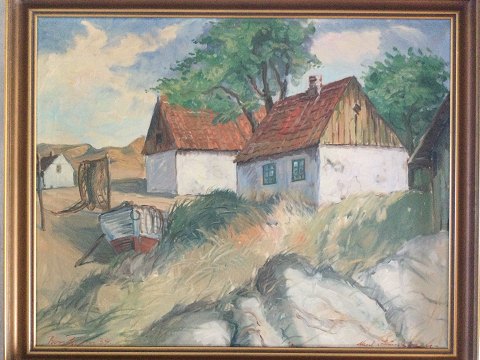 Maleri - Aksel Lundgreen 1939 - Fiskerhuse på Bornholm.