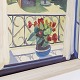 Maleri. 'Blomster i vinduet' med hvid ramme. Signeret.