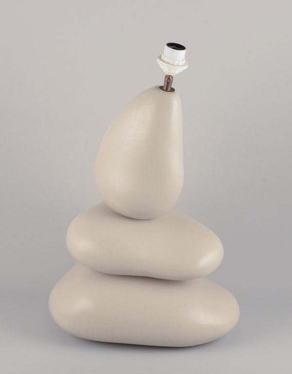 François Chatain, French ceramicist. Large organic, three-shaped "Karek" table lamp in unique ceramics with gray glaze.