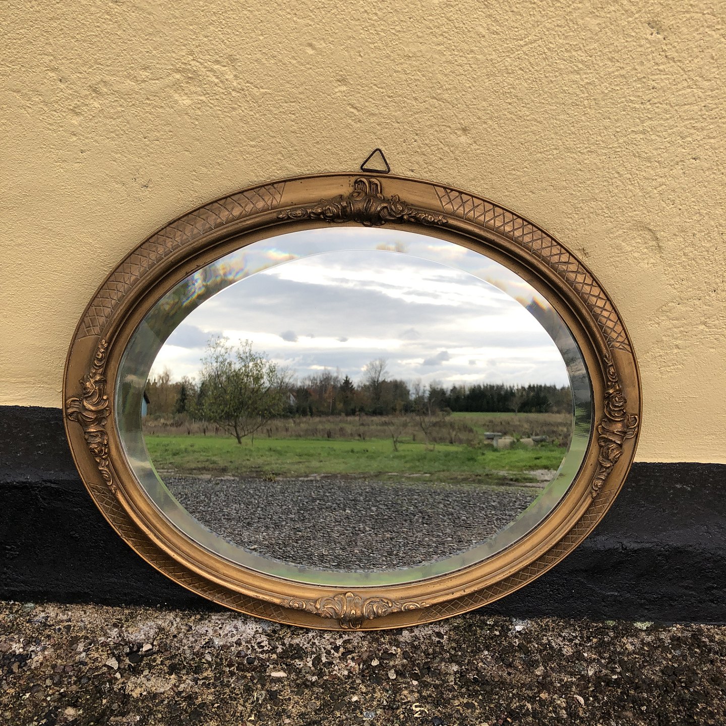 Facetslebet spejl i bemalet træramme. Mål: 48x58 cm