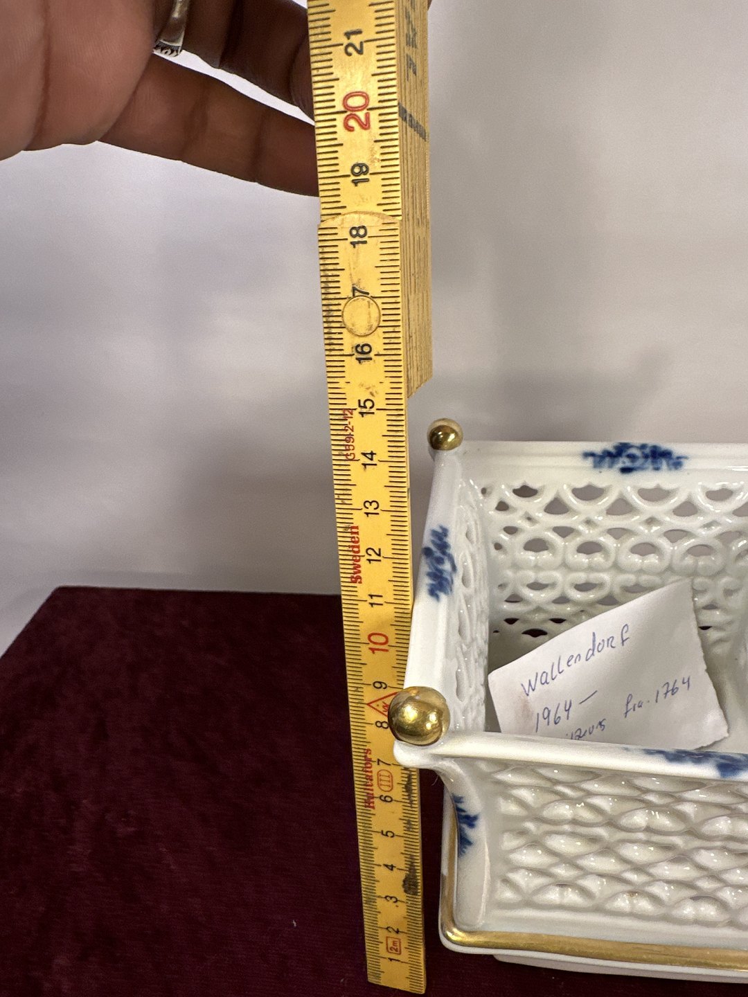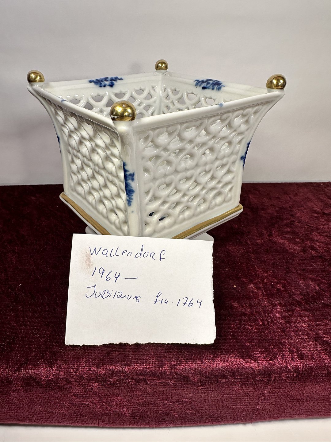 Tysk Wallendorfer porcelæn. Blå Blomst opsats med blondet sider.