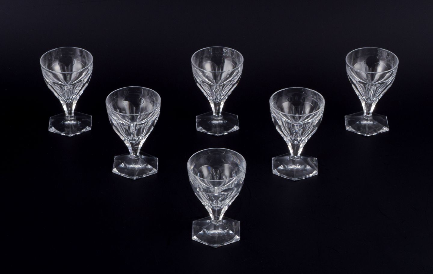 Baccarat, Frankrig, et sæt på seks Art Deco glas i klart krystal. Facetslebet.