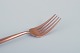 Et firepersoners modernistisk middagsbestik i messing bestående af fire middagsknive og fire middagsgafler.