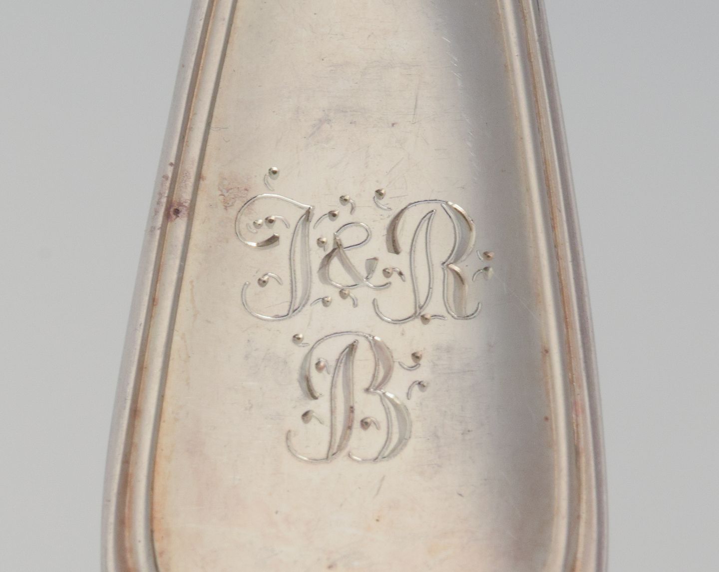 Robbe & Berking, tyskland. Fem dele bestik i nysølv bestående af en middagskniv, en middagsgaffel, to spiseskeer og to pålægsgafler.