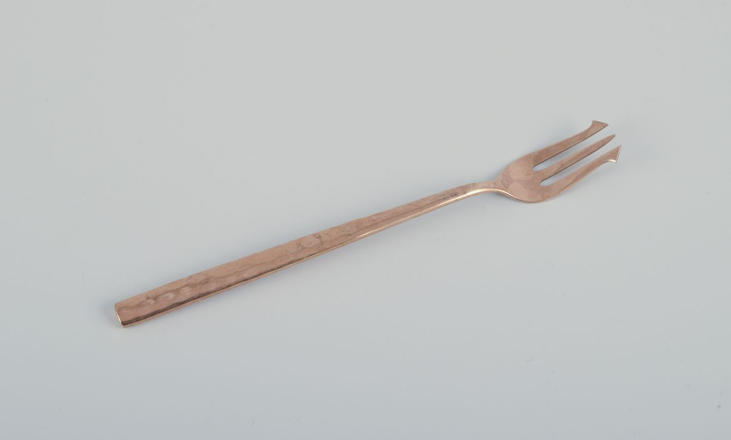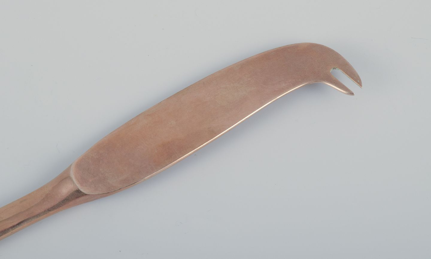 Skandinavisk designer. Tolvpersoners osteservice i hammerslået messing. Håndlavet i høj kvalitet.