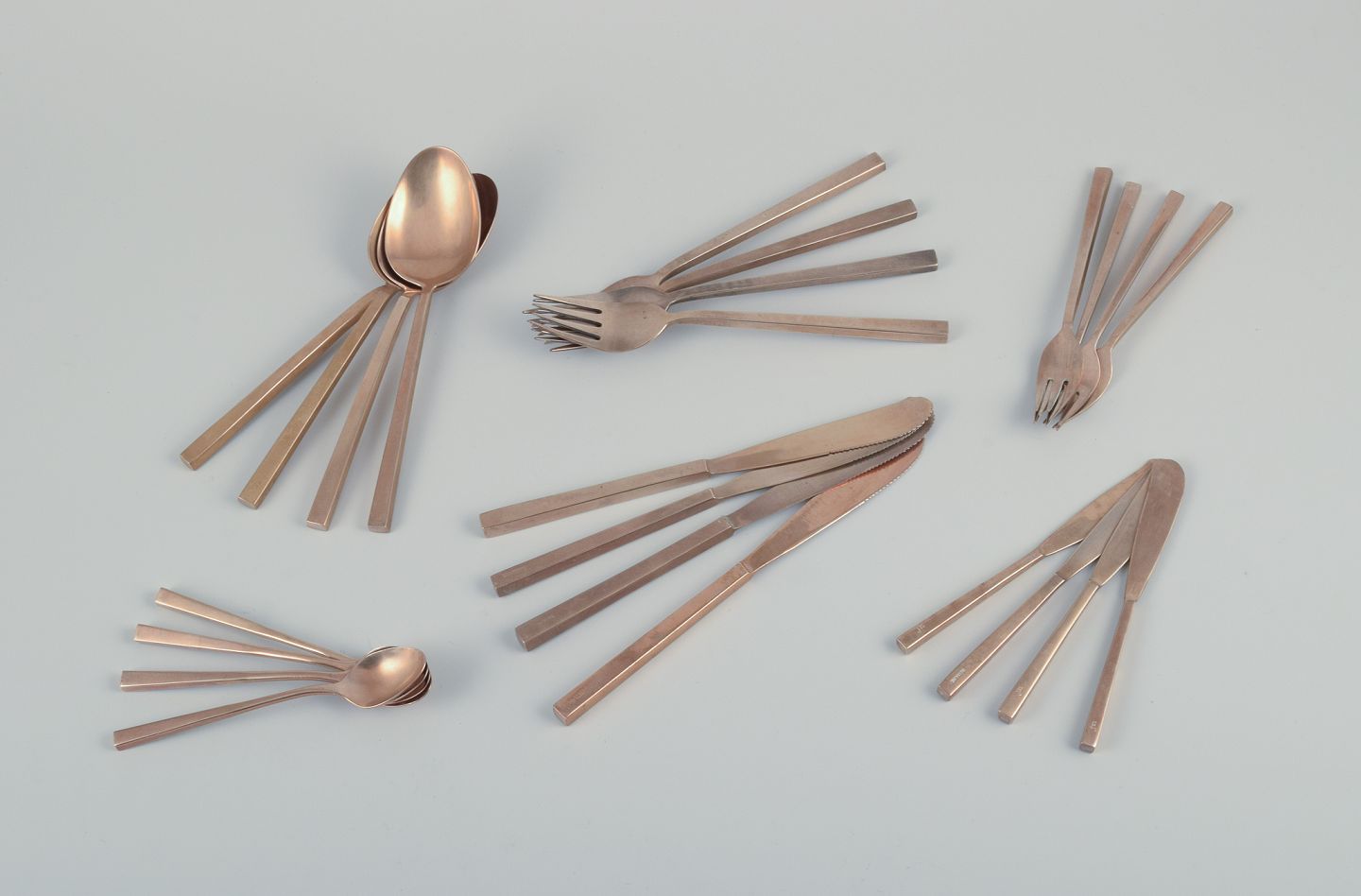 Sigvard Bernadotte ”Scanline” bestik i messing. Firepersoners middagsbestik. 24 dele.
