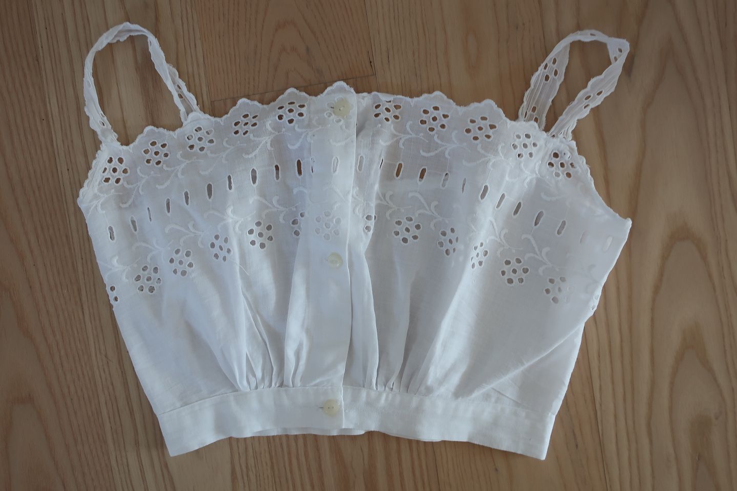 Smukt gammelt livstykke/top/kort bluse med håndbroderi